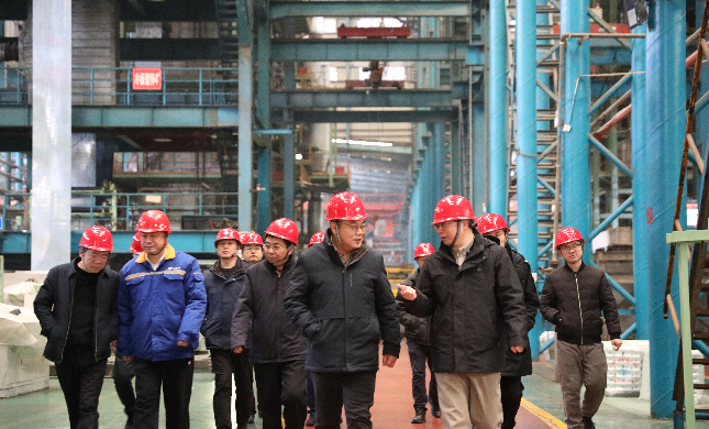 2026年2月5日上午,大冶市副市长吴飞莅临山力兴冶薄板公司检查特种设备隐患排查整改及工贸企业安全生产工作,山力兴冶薄板公司总经理刘跃进陪同参观生产车间,并就公司生产经营、安全生产、春节期间安全部署等情况作简要汇报。